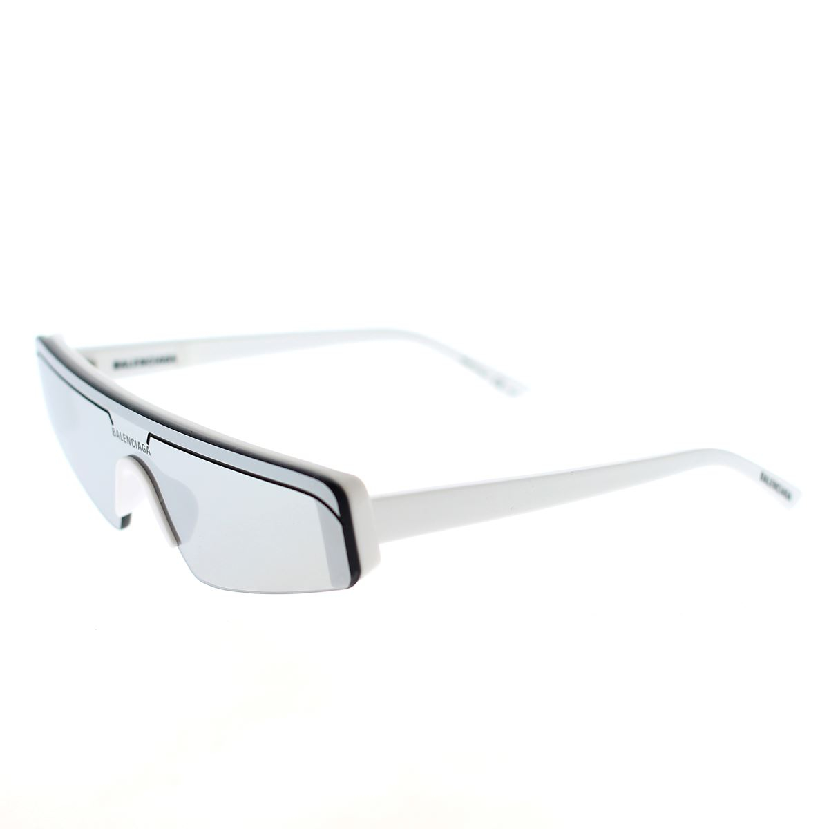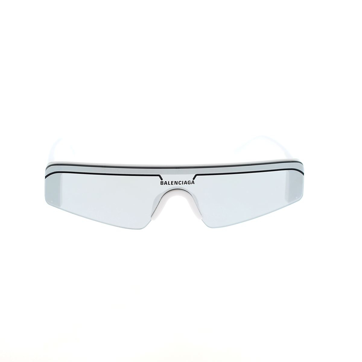 Die Vorderseite des Modells besteht aus einem einzigen Glas mit Emaille-Profil und dem aufgedruckten Balenciaga-Logo über dem Steg.