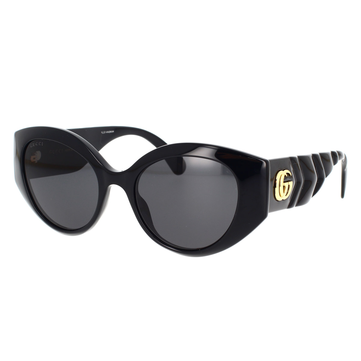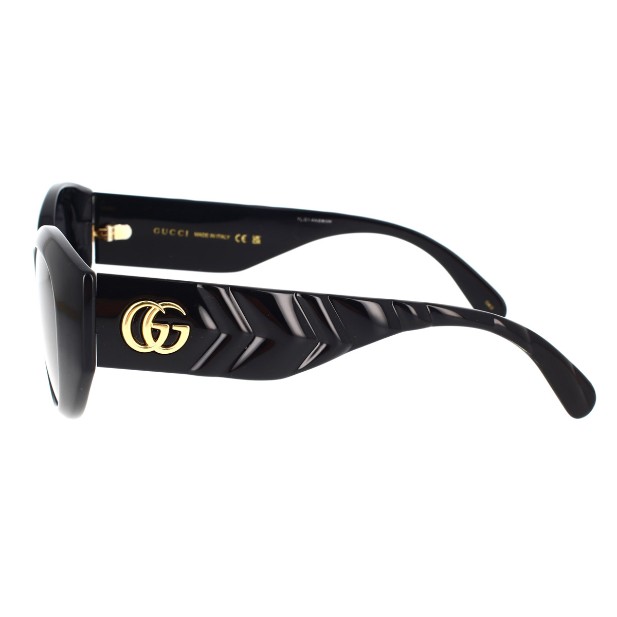 Eine neue Mode, die die ikonische und elegante Stimmung von Gucci in direktem Zusammenhang mit der Marmont-Tasche voll zum Ausdruck bringt. Elegantes und raffiniertes, abgerundetes Cat-Eye, das sich durch die Dekoration an den Bügeln auszeichnet, die das für Gucci-Lederwaren typische Gefühl von Weichheit vermittelt. Das Gucci-Logo auf den Bügeln verschönert ein bereits perfektes Modell.