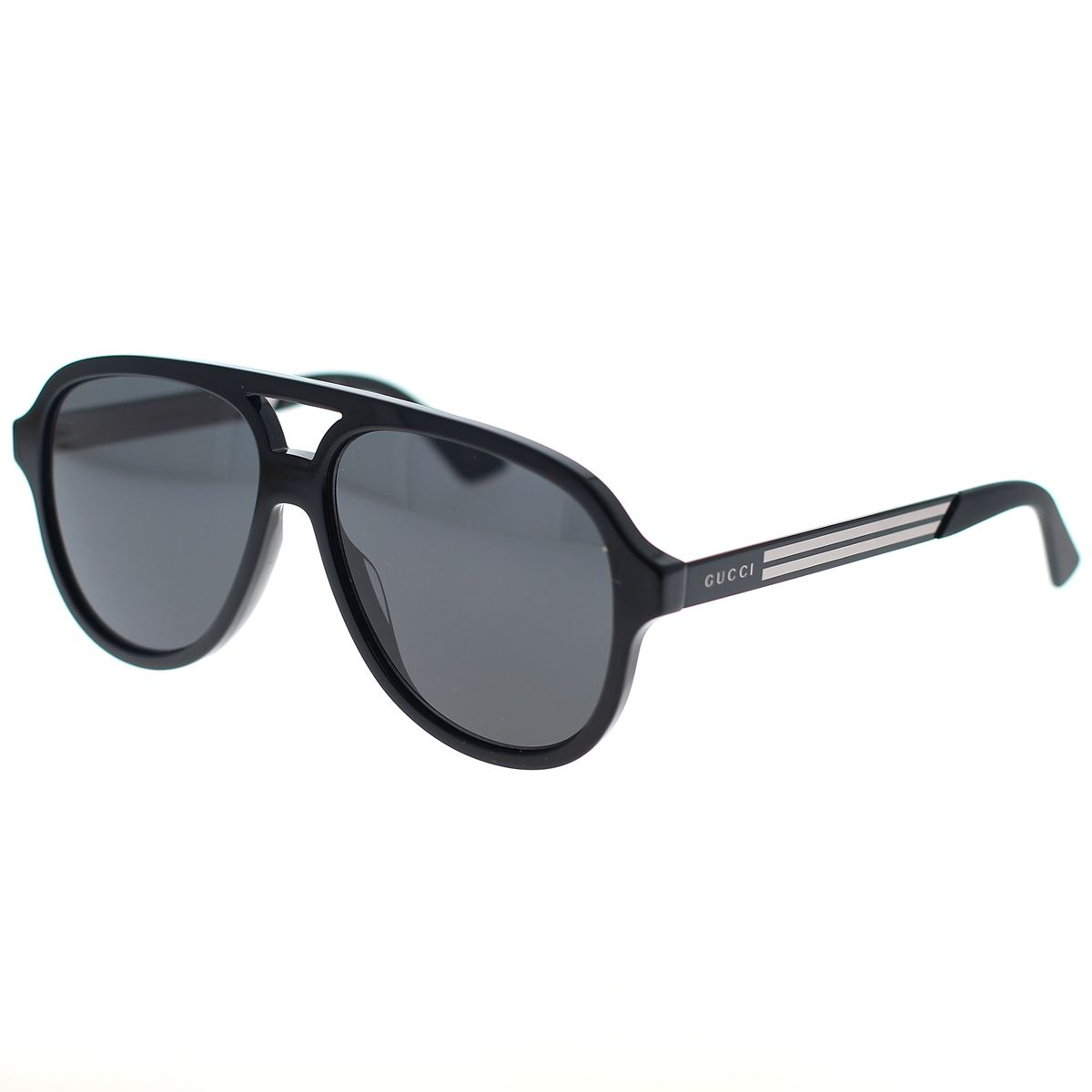 Logo mit Gucci-Schriftzug und glänzenden Streifen auf den Bügeln.