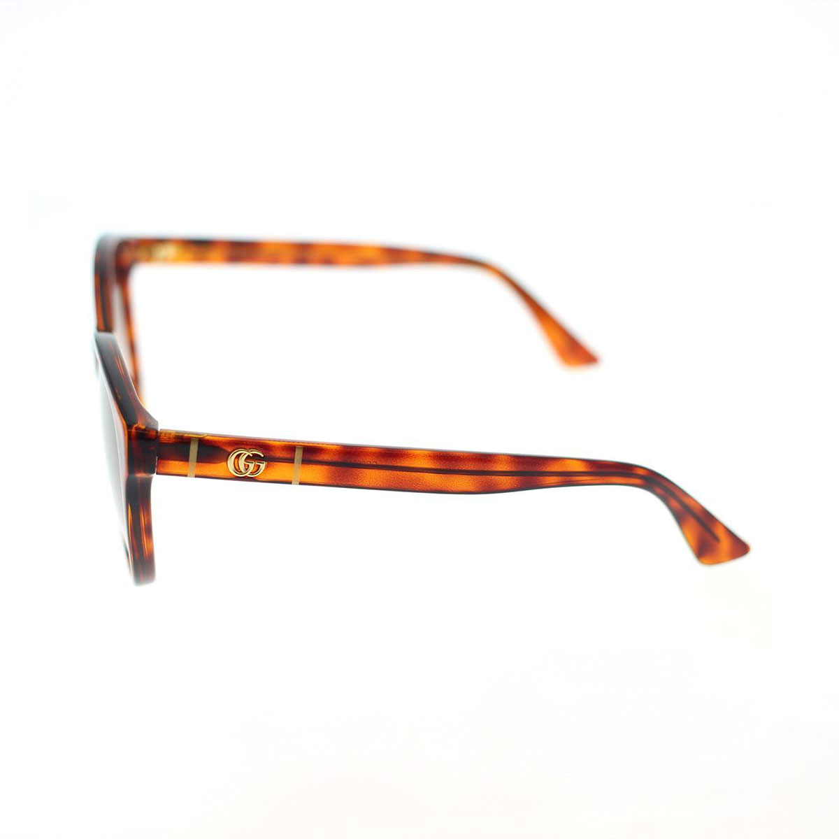 Gucci GG0631s Ikonisches, feminines Modell aus der Gucci-Kollektion, neu interpretiert in einem eleganten und leicht zu tragenden Stil. Runde Sonnenbrille in Form eines Katzenauges. GG-Logo an den Bügeln zwischen zwei goldenen Balken.