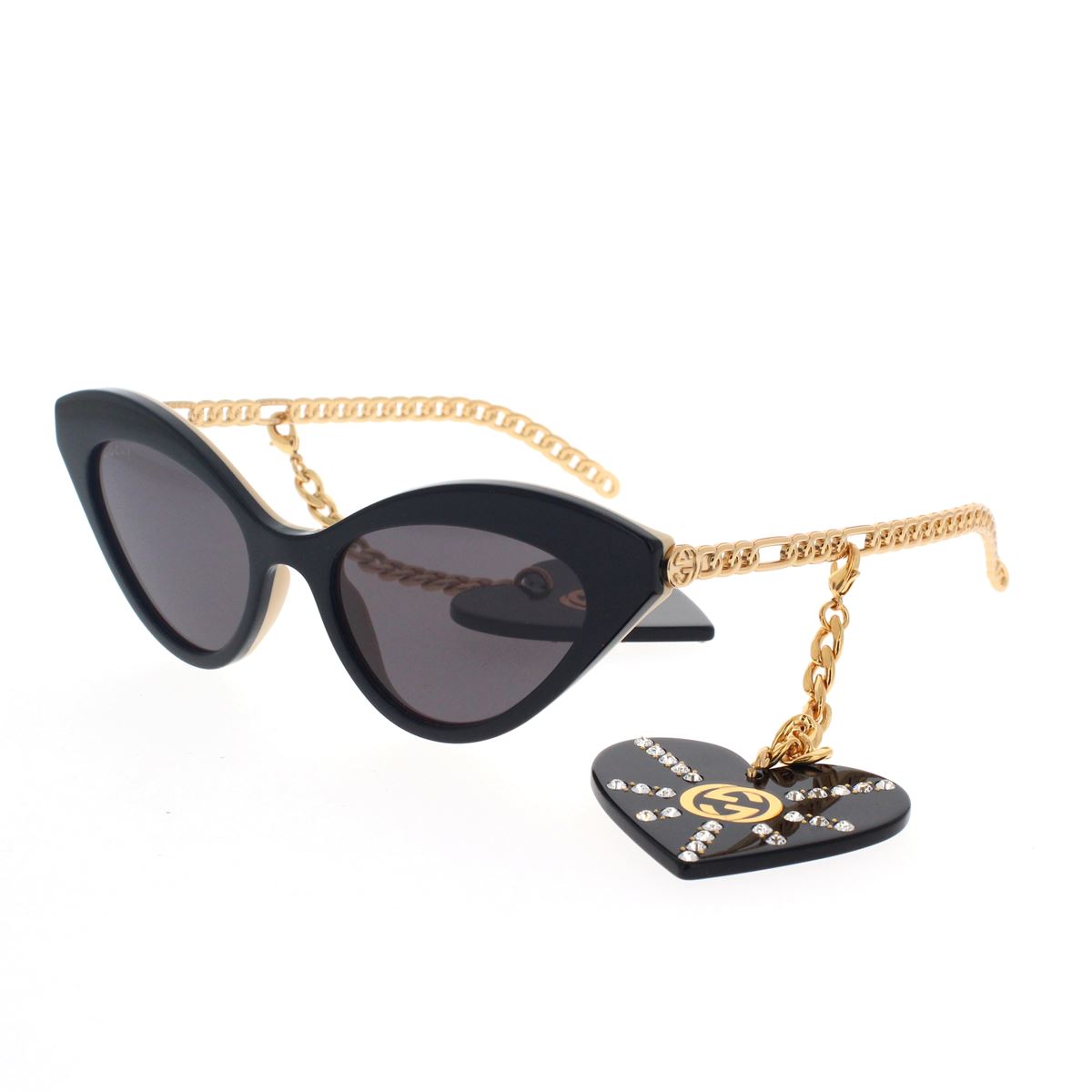 Ein neues Modell der kultigen Gucci Chain Linie für das Jahr 2020: Inspiriert vom eklektischen Geist der 1970er Jahre, ist dieses Konzept für alle gedacht, die eine coole und trendige Brille suchen. Die extreme Katzenaugenform des Acetatgestells ist mit austauschbaren Ketten für einen individuellen Look verziert. GG-Logo auf den herzförmigen Ohrringen und auf der Metallplatte an den Bügeln.