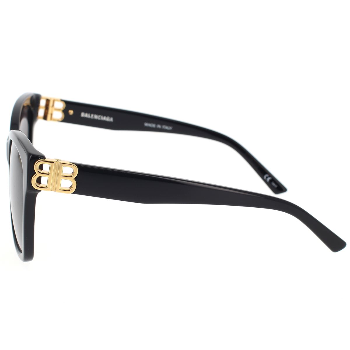 Ihr Name ist von der luxuriösen Ästhetik der 1980er Jahre inspiriert. Quadratischer Rahmen im Vintage-Stil. Goldene Scharniere mit faltbarem, symmetrischem BB-Logo , das die spitz zulaufenden Bügel betont.