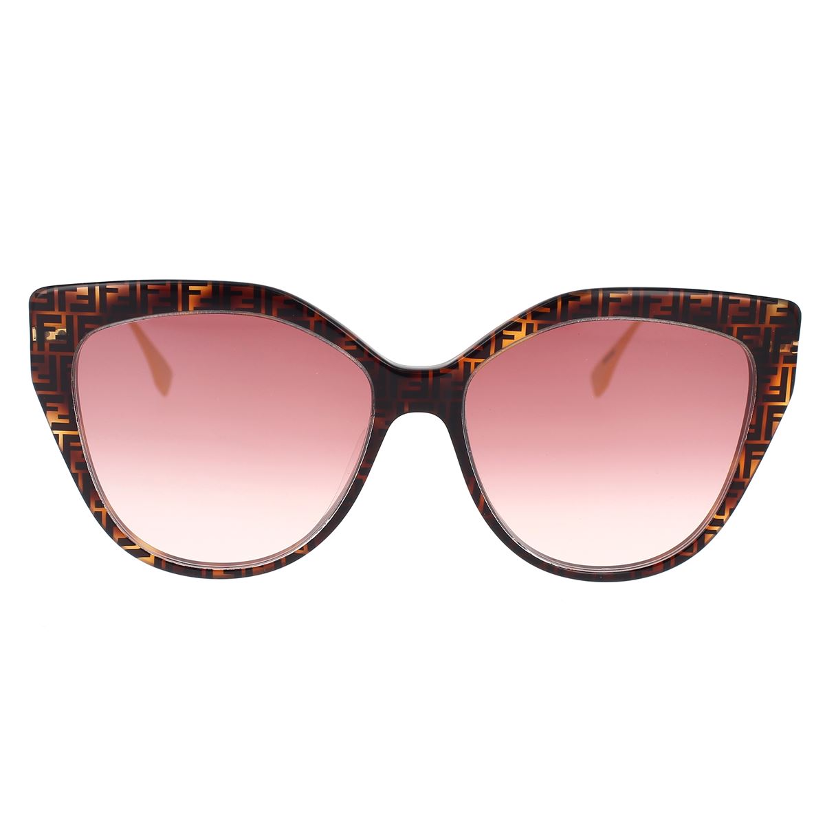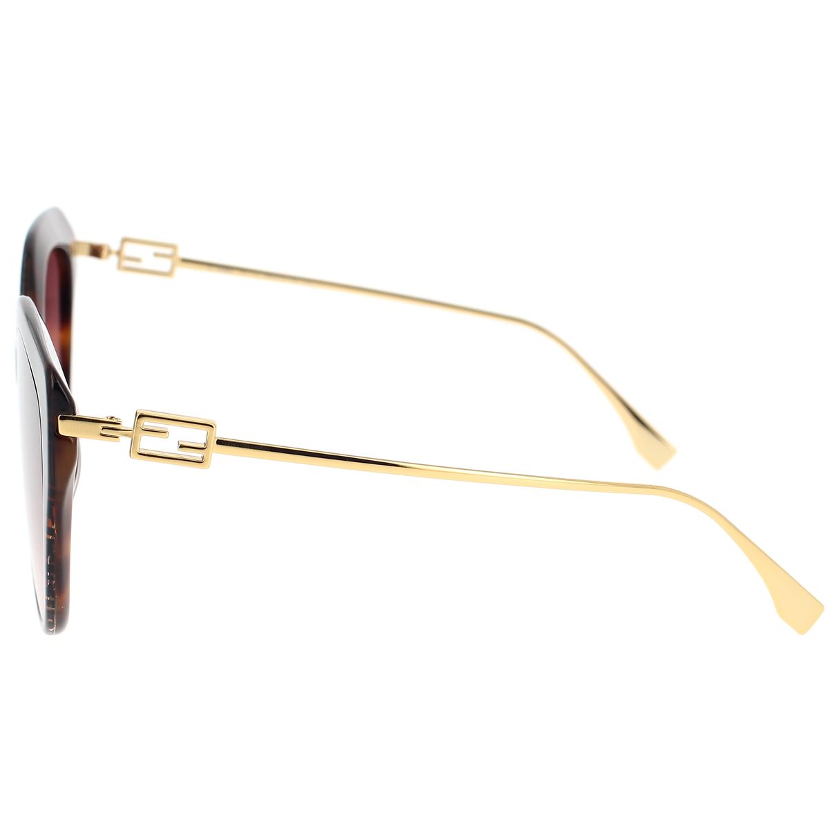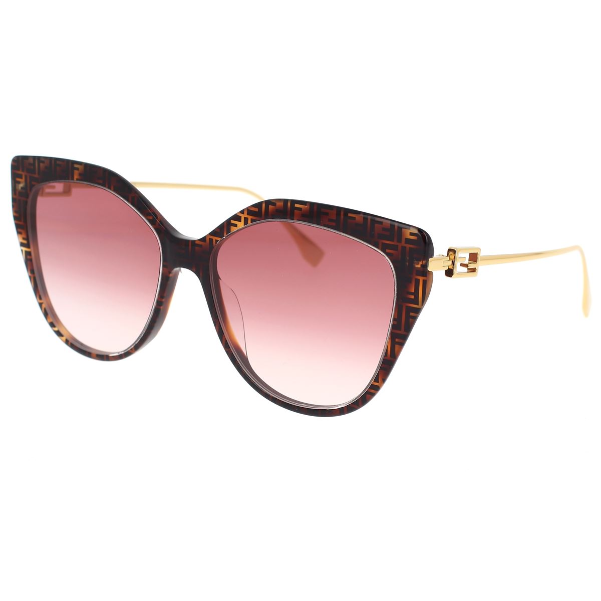 Die Sonnenbrille von Fendi hat eine wahrhaft glamouröse Oversize-Cat-Eye-Form. Der minimalistische Rahmen aus havannafarbenem Acetat und Metall verleiht der Brille ein sehr subtiles Profil mit extremer Eleganz. Das Besondere an diesem Accessoire sind die Bügel mit dem kultigen FF-Logo der Marke.