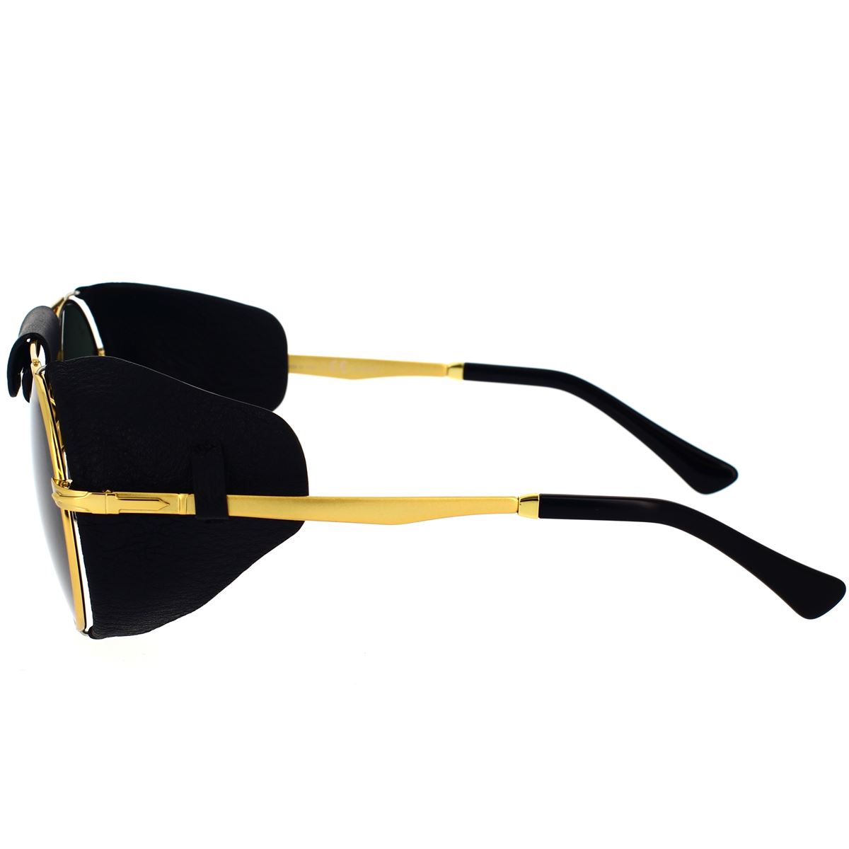 Ein aktionsbereites Modell, inspiriert von Abenteurern und der Welt der Motoren. Abnehmbares Lederschweißband und Scheuklappen für ein leistungsstarkes Sonnenmodell.